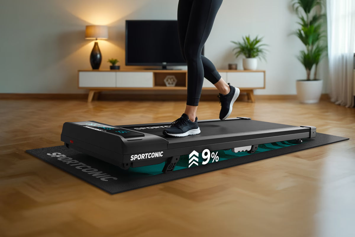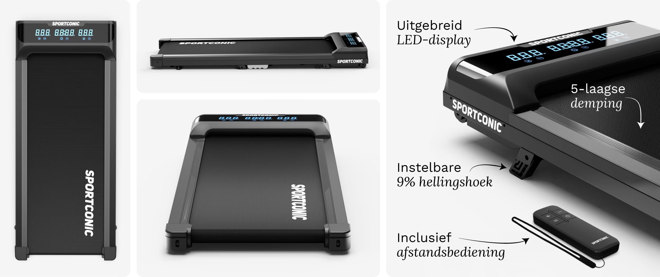 Stille, compacte wandelband tot 6 km/u. Perfect voor onder je bureau of thuis voor de tv. Geen installatie nodig, direct klaar voor gebruik.